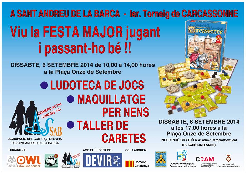 Per la Festa Major de Sant Andreu de la Barca, a la tarda del primer dissabte de setembre, organitzem un torneig del joc de taula Carcassonne.