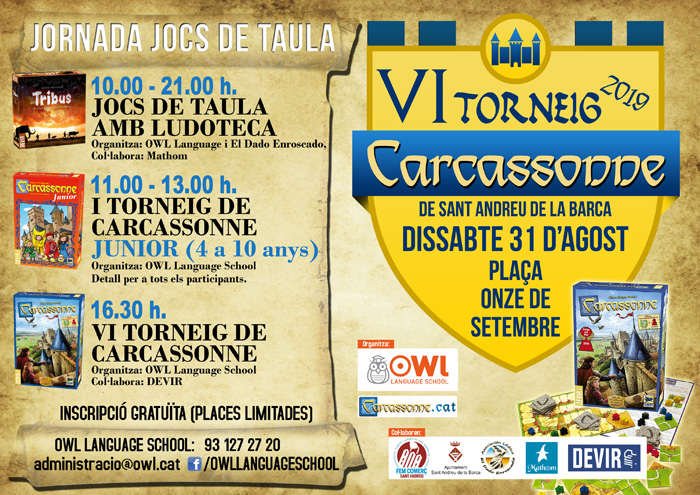 Comptem amb la col·laboració d’associacions, comunitat del joc Carcassonne i botiga de jocs de taula.